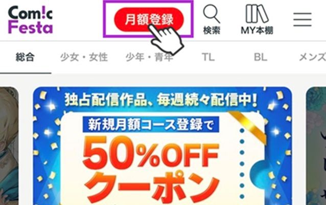 ①サイト上部の「月額登録」をクリック