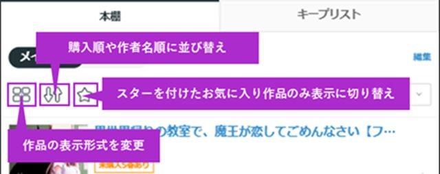 MY本棚では表示作品の並び替えや絞り込み、削除が可能です。