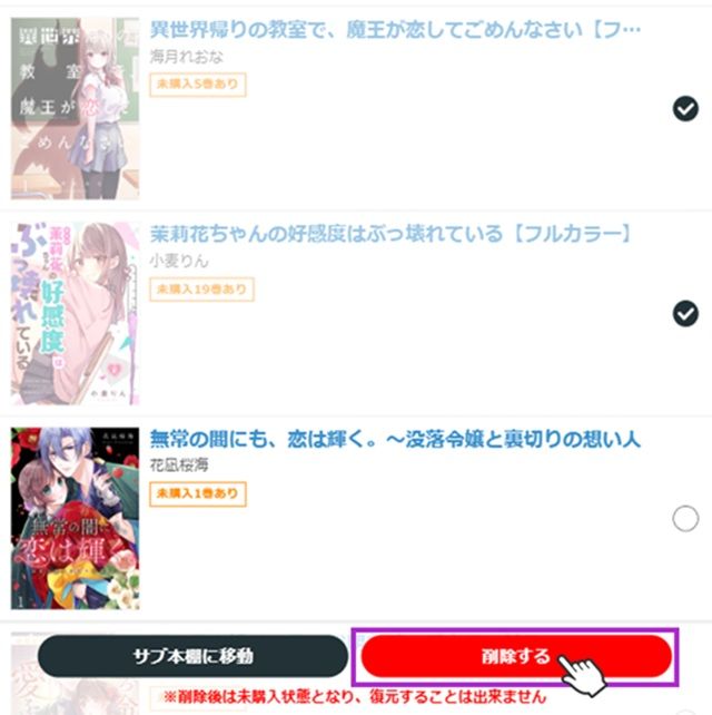 ※削除した作品は未購入状態となり、復元することは出来ません
