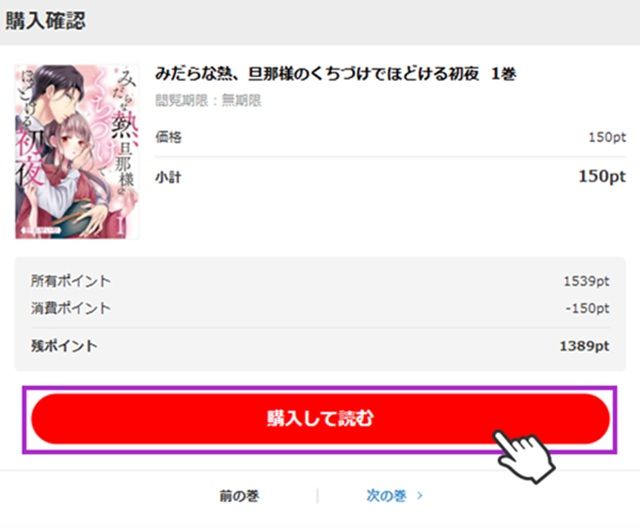 下記の手順でコミックの購入ができます
