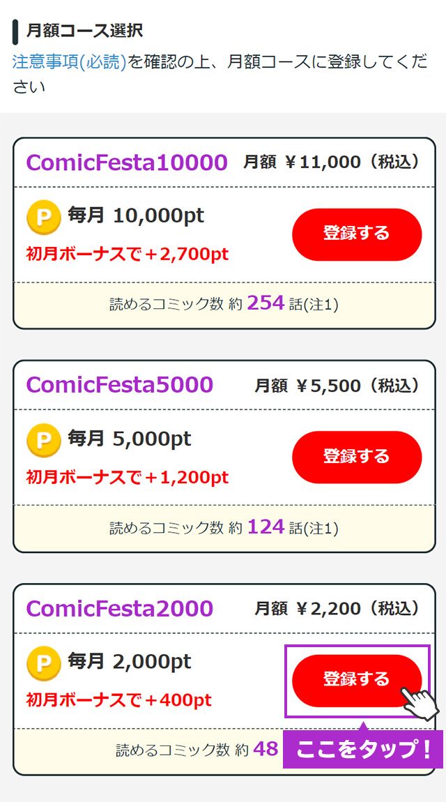 ①会員登録のボタンをタップ