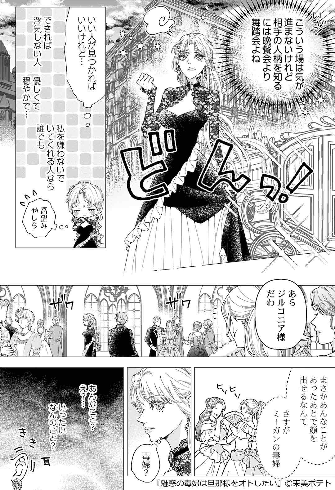 まさか【毒婦】と偽ったまま、旦那様に床入りするなんて…――公爵家の長女であるジルコニアは、「男を誑かすのが好きな毒婦」という嘘の噂を流されてしまい、親友のリーリアに婚約者のクリスを奪われてしまう。ジルコニアを政略結婚の駒としか見ていない父親にも見限られ絶望していると…【竜殺しの騎士伯】と恐れられているシグルディスから求婚の便りが届く!婚約者も、親友も、後ろ盾も失ったジルコニアは、この結婚を成就させるべく、シグルディスに毒婦として近寄るも、シグルディスは意外な反応を見せて…?――大人気ノベル『魅惑の毒婦は旦那様をオトしたい』待望のコミカライズ!